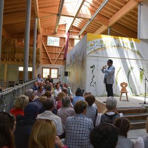 Auf der Bühne steht die Kuh und mit ihr der Bulle, der Ochs, das Kalb, der Esel, die Ziege, das Schaf und das Huhn....